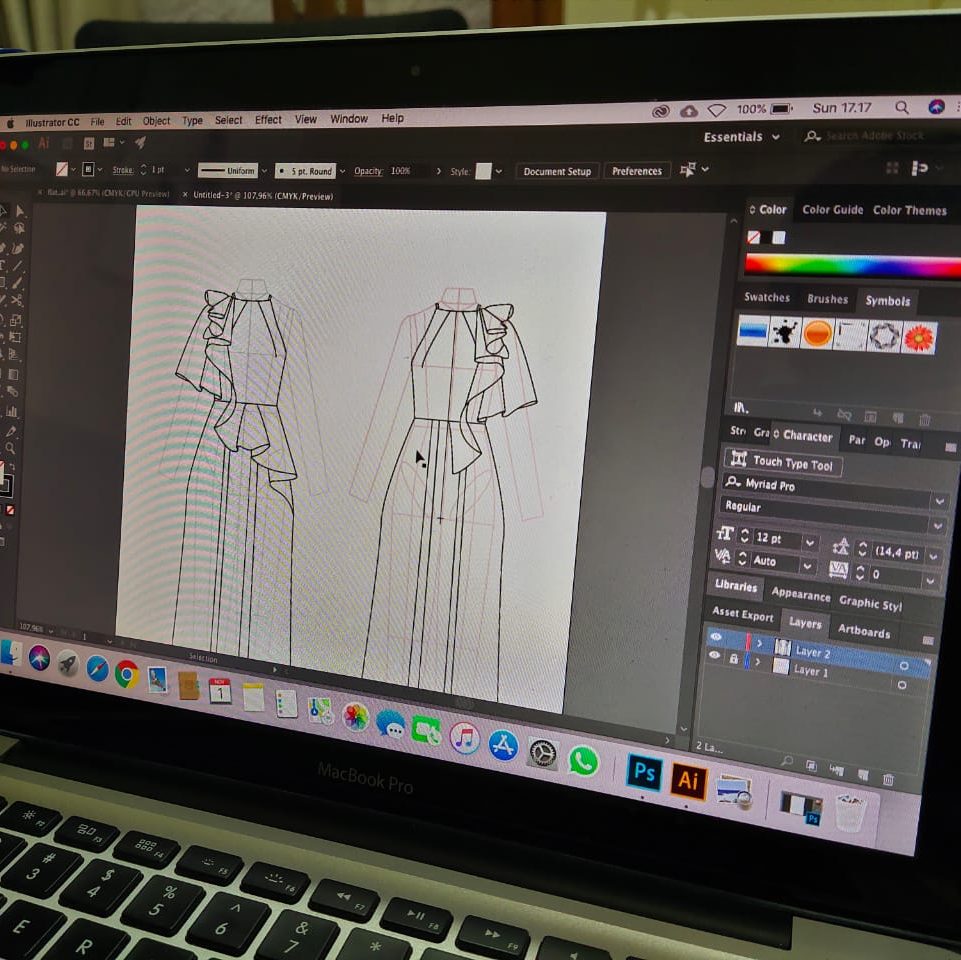 This class focuses on flat sketching, garment construction detailing, and digital drafting using professional software. Students will learn to create accurate technical drawings essential for production, working with grids, typographic systems, and advanced Illustrator functions.