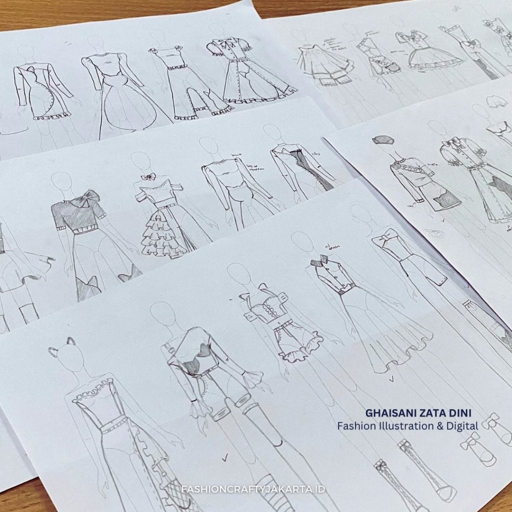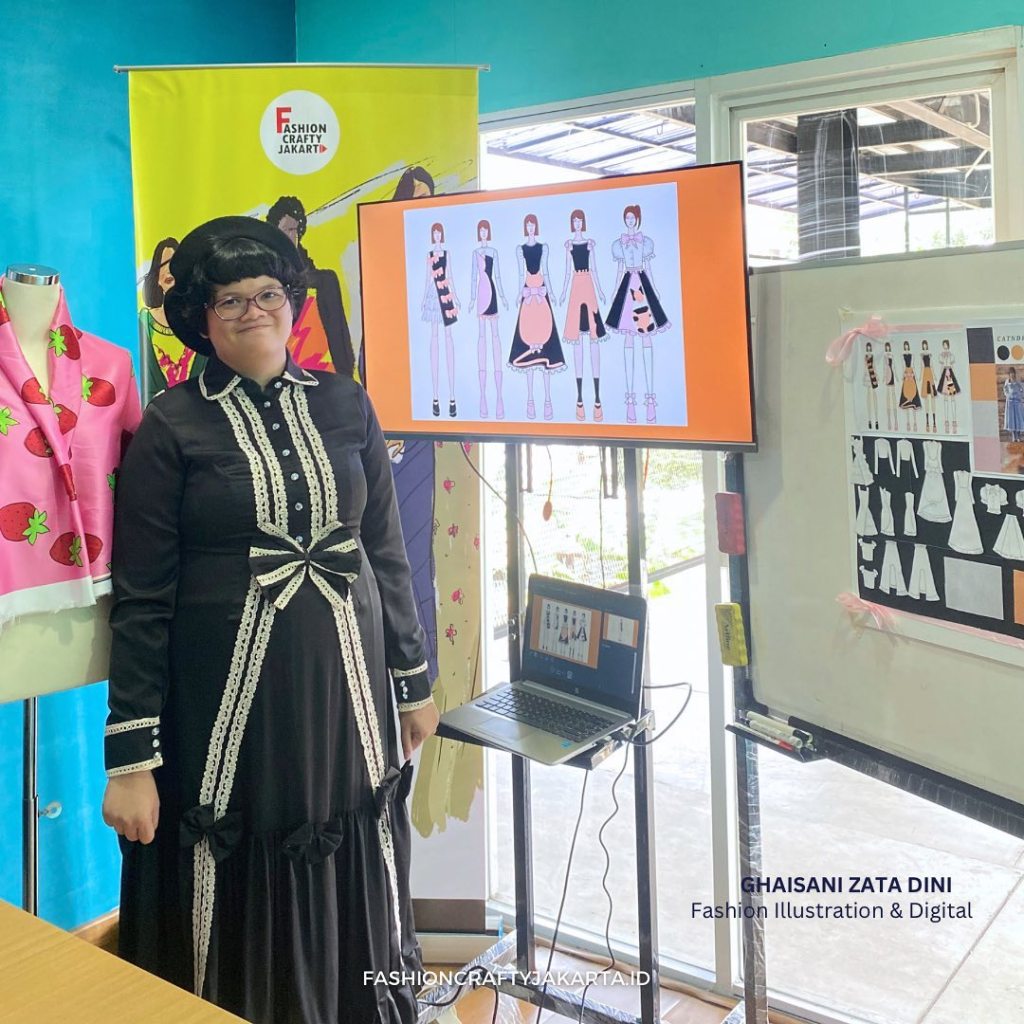 Ghaisani Zata Dini presents her collection, showcasing the results of her learning journey in the Fashion Design and Digital Illustration program. Her collection is inspired by her beloved cat, reflecting a personal and whimsical connection to the theme. Each design blends playful and elegant elements, highlighting her creative growth and technical skills developed throughout the course.