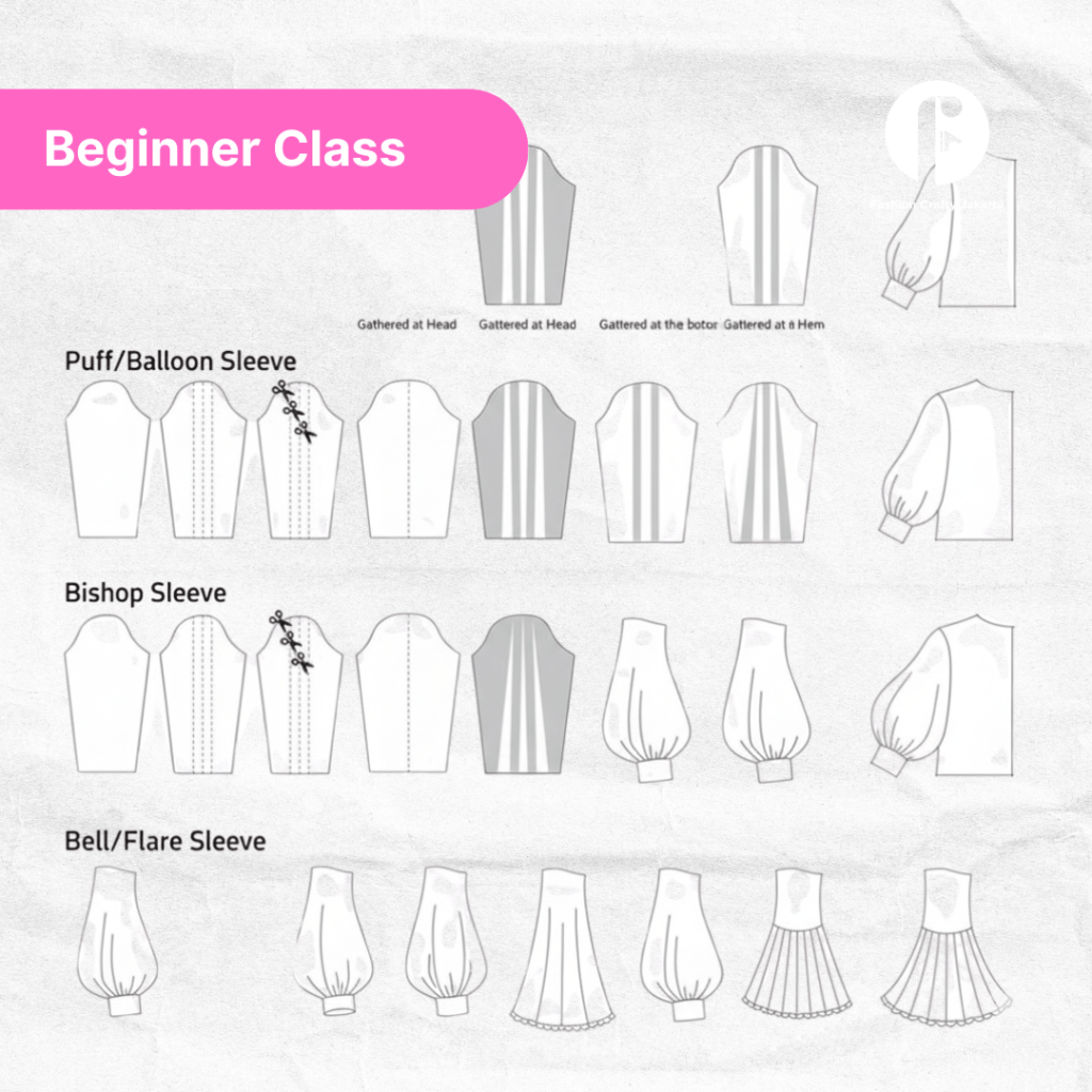 - Draft different types of sleeves (basic, puff, kimono, raglan, etc.).